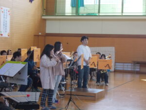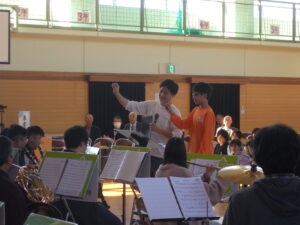 卒業生の団員に本校での思い出を聞いてくださったり、指揮者体験をさせてくださったり、校歌を演奏してくださったりと、心に残る時間になりました。