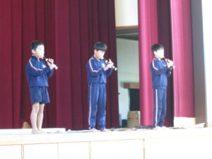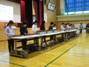 難しい本校の校歌を、大正琴で見事に演奏した4年生。総合的な学習の時間での調べ学習も生きていました。