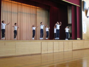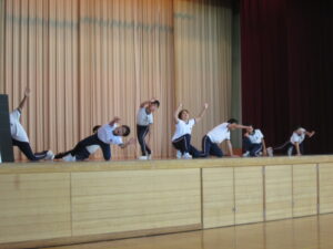 様々な表現方法で、会場の皆さんを楽しませてくれました。音楽に合わせたダンス、テーマに合わせた創作表現。今年の元気な学校を引っ張ってくれているリーダーの5・6年生らしい発表でした。