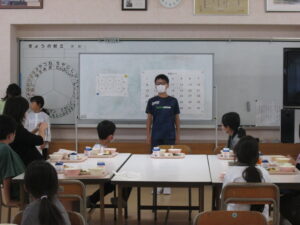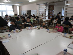 コロナ禍以前は、全校児童が集まっての給食を実施していましたが、近年は、学級での給食に変わっていました。6年生も全校での給食は、初めてです。