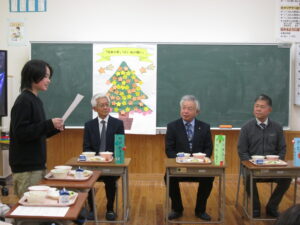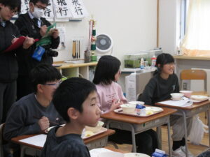自分たちの暮らしを支える政治の役割や、大人たちの願いを直接聞くことができ、子供たちにとって大変貴重な経験となりました。食後には「町の政治についてもっと知りたいと思った」という声も聞かれ、自分たちの住む町への関心を高める素晴らしい時間となりました。また、「町長さんたちと食べた給食は、いつも以上においしく感じた」と話す声が聞かれ、子供たちにとって特別な時間となったようです。