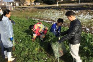上市高校生との交流会、第2回目が行われました。 8月の第1回目では、一緒にサイネリアと人参の種まきを行いました。あれから数ヶ月、今回はその成長を確かめる大切な日です。