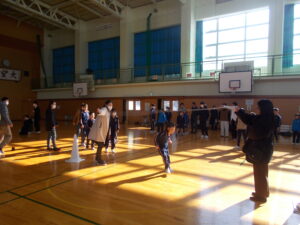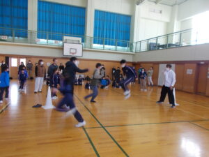学級懇談会に引き続いて、PTA厚生部企画の「親子8の字跳び大会」がありました。子供たちは普段から練習をしていますが、お家の方々も上手にとんでおられました。みんながにこにことした表情で活動しており、素敵なひと時でした。