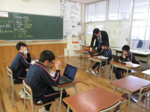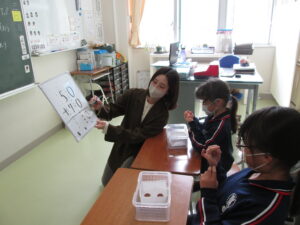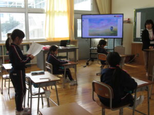 子供たちは、ちょっぴりそわそわしながらも、普段のように学習を進めていました。先生方との信頼関係が分かる授業風景でした。