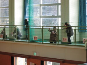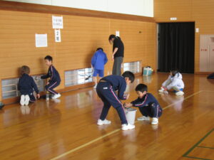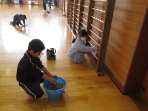 同じく、PTAの企画で、「みんなで体育館をきれいにしよう」がありました。地域からも何名も来られて、閉校式や卒業式が行われる体育館を保護者の方々、子供たちと一緒にていねいにそうじをしていただきました。